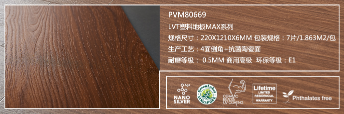 耐磨等级:0.5MM商用高级 环保等级:E1